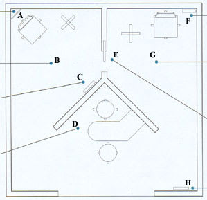 | F | This room layout allows a 24-foot chart distance using mirrors. |