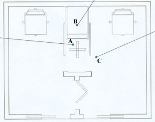| B | This layout allows a 13-foot chart distance using mirrors |