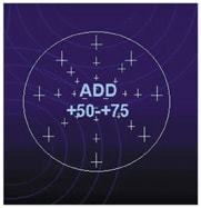 This aspheric lens design provides more add than the patient's previously worn distance-only lenses. You can also offset the distance prescription by a maximum of one-half diopter without degrading distance vision.