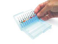 Santinelli now offers drill bits ranging from .9 mm to 2.5 mm for drilling all lens materials. Made of micro-grain tungsten carbide for maximum durability, the bits are ideal for use with Santinelli's LessStress drill, but also work with other makes. The rigid geometry of the design makes the bits the optimum choice for the precise drilling of three-piece mount frames, the company says. The bits also feature color-coded reference rings that indicate their precise size and serve as automatic height adjusters to perfectly align the correct height for exact drill depth.