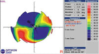 LASIK patients who need treatment for correction of hyperopia and who demonstrate post-surgical irregular astigmatism still have a prolate shape to their corneas. They may have steeper-than-normal central curvatures, which you can usually treat successfully with GP lenses using steeper spherical base curve values. You can even employ smaller lenses for these patients, and sometimes steeper-fitting keratoconic lens designs may prove helpful.