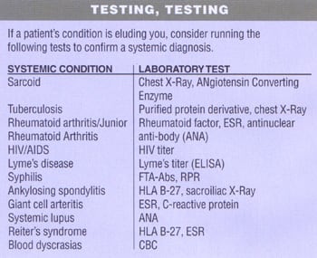 Order lab tests to confirm or deny uveitis in the following cases: