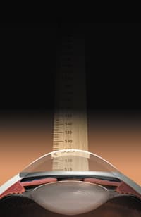 Take, for example, the case of a 34-year-old pediatrician interested in LASIK. Her habitual prescription was 3.00 1.50 x 170 OD and 2.50 1.00 x 163 OS. Her exam, including a cycloplegic refraction and corneal topography, was unremarkable. Pachymetry measured at 460 µm, roughly equal in each eye. In consultation with a refractive surgeon, we decided that she wasn't a good candidate for LASIK based on thin corneas, so this patient didn't waste a trip to the surgery center. It's also beneficial to know your patient's corneal thickness after she's undergone refractive surgery so you can calculate her true IOP.