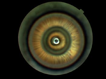 The four-mirror lens design has many advantages over the single and three-mirror versions. Because it doesn't need to be rotated on the eye, the procedure takes less time and does not require gonioscopic fluid (see image 2). And, four-mirror lenses are preferred in children and in patients with small or tight palpebral fissures because they are smaller.