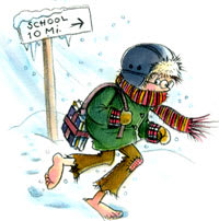 "Bygawd, when I was your age, I walked to school," was my contribution to the discussion. Obviously unimpressed, one grand- daughter replied, "Ten miles." "In the snow," said a second. "Barefoot," said the third.