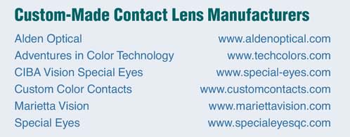 Many of these companies require a color photo of the good eye and often require special lighting of the photo to achieve the best result. These companies can produce these lenses with a color-matched sclera ring to improve the match, and these lenses can even correct low degrees of eso- or exotropia. The time required to produce these lenses and the cost involved make this option difficult for the average contact-lens practitioner or patient. But for specialty cases, this is a great option.