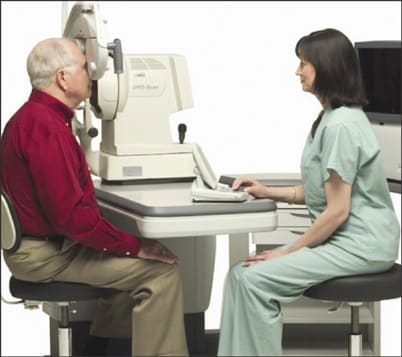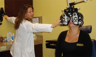 Figure 2. Performing a refraction with an electronic phoropter allows the practitioner to sit more comfortably during the procedure.
