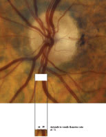 be aware of the various ocular manifestations that can signal these conditions. For example, the identification of intraocular flame-shaped hemorrhages is often a sign of high blood pressure. In addition, dot-and-blot hemorrhages, seen via direct ophthalmoscope, are usually characteristic of diabetes.3,4 More recently, researchers have linked changes in retinal blood vessels with arteriolar-sclerosis, diabetes, increased likelihood of heart disease and even increased probability of developing glaucoma.1-5 Indeed, arteriolar narrowing observed in the area of the retina just beside the optic nerve head has been correlated with similar narrowing of the arterioles of the cardiac muscle and hence, with increased incidence of heart attack.2 While this so-called "SAHARA" phenomenon has been widely recognized within the ophthalmic community, it has only recently been experimentally documented and verified.2 People who have smaller arteriolar diameters are more likely to experience myocardial infarctions as well as stroke and even migraine.2 De-creased arteriolar diameter also predisposes patients toward the development of age-related macular degeneration, presumably via impairment of retinal perfusion.6,7 Carbon Monoxide (CO) poisoning and systemic inflammatory diseases, such as diabetes, cause retinal venules to dilate so that you may be able to initiate or complement a medical diagnosis based on a simple, quick and noninvasive procedure (ophthalmoscopic observation and subjective impression constitute the standard methodology).8 Further, when the venule caliber expands just beside the optic nerve head, researchers have observed that blood also contains certain chemicals correlated with inflammation and hence increased risk of sequelae of those inflammatory entities.9 Researchers have associated deviations of posterior pole arterioles and venules from "normal" calibers with several systematic disease entities. For example, narrowing of the arteriolar lumen diameter can result from high blood pressure as well as hyperlipidemia, and it has been correlated with progression from ocular hypertension to glaucoma.1 Putatively, smaller arteriolar diameter makes the optic nerve head more susceptible to diurnal variations in the intraocular pressure and so leads to a sequence of biomechanical and chemical events that eventuate in death of neurons in the optic disc.8 |
