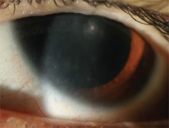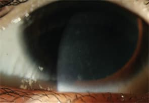 Figure 5: The optic section of this patient's left eye reveals re-epithelialization and thinning of the central cornea.