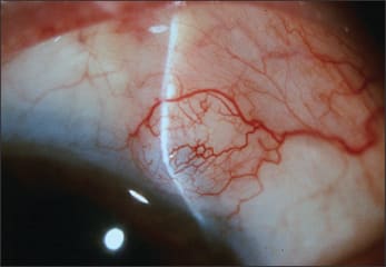 ► Bleb dysesthesia or a symptomatic bleb. This can be problematic for some patients if the bleb is sufficiently elevated to cause surface disruption, such as dellen formation or irregular astigmatism from extension onto the cornea. If your patient presents with this finding, refer him for a bleb revision.