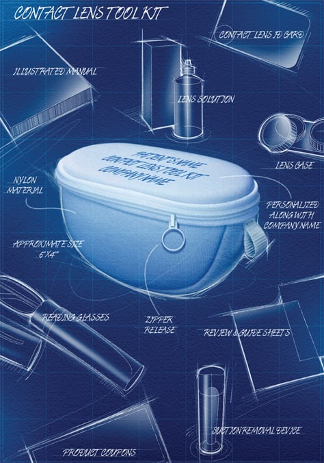 Because patients appreciate convenience and organization, you can further facilitate compliance to your instructions by providing your new CL patient with a compact, gender-neutral and easy-to-carry pouch or shopping bag, where he or she can store the various components of the kit for easy access. your practice's CL Tool Kit pouch or shopping bag can work as an effective external marketing tool for your practice if it displays your practice's name and logo.