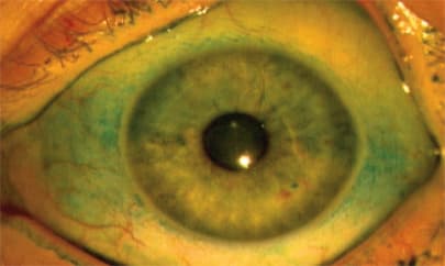 Dr. Devries: I look for conjunctival chemosis, which often accompanies itching. To determine the dry eye component, I evaluate the quantity and quality of the tear meniscus by positioning a small conical beam from the slit lamp on the lower temporal aspect of the lid margin. Then, I instill fluorescein to determine if any staining is present and measure tear film breakup time. Patients often will experience a burning sensation before the tears visibly break up, indicating the tear film breakup time.