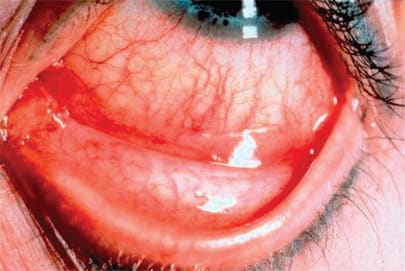 Douglas K. Devries, O.D.: To make a distinction between ocular allergy and dry eye symptoms, I look for chemosis, especially the glossy appearance of the eye, which is a hallmark of ocular allergy.
