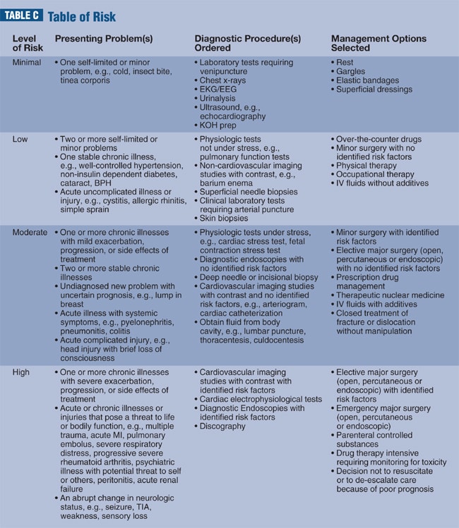 Note: Please pay close attention to the Table of Risk. This is the only one sanctioned by CMS. The word "referral" does not appear under any of the management options. You cannot claim any credit for referring the patient out in the Table of Risk.