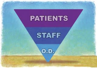 Patient loyalty must start with the doctor, or the CEO, of the practice. I like the illustration of the inverted pyramid Nordstrom uses to describe its philosophy and structure (as pictured above). What this illustration depicts is the doctor, or CEO, as the foundation of the entire company and more importantly, the inverted pyramid demonstrates that the most important people in the company are the customers (or patients) — as they appear at the top — and then the employees. Once we start to think in this way, we change our approach to businesses.