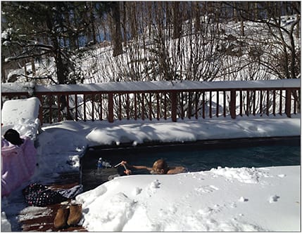 Dr. Sherman doing laps in his 84° pool during the winter.