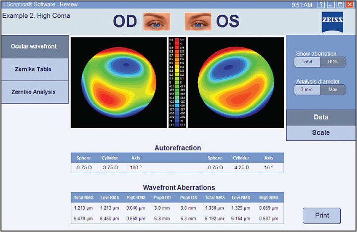 In addition, i.Scription has allowed me to give them a better understanding of their vision, which they appreciate. Specifically, with the i.Scription software, I can show patients the nature and extent of their HOAs, so they understand “why” they’ve struggled to see well at night.