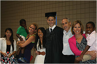 The Ferrigno family at son Anthony’s high school graduation in June 2013, from left: Nicole, Jaylen, Brittany, Kaia, Anthony, Bob, Laura and Alysha. Kaia and Nicole were adopted from China; Jaylen and Alysha are foster children.