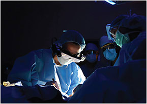 Washington University School of Medicine surgeon Julie Margenthaler wore yet-to-be-named glasses, developed by fellow University professor of radiology Samuel Achilefu, Ph.D., that make cancer cells glow blue, while performing breast cancer surgery on Feb. 10. Specifically, a molecular agent that perfused cancer tissue was injected into the patient, making the cancer cells glow upon viewing with the glasses. The technology is currently in the early stages of development.