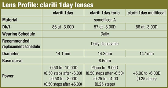 With the clariti 1day lenses, we can offer a wide variety of patients a quality daily silicone hydrogel lens that handles well, offers UV protection, is comfortable and provides excellent optics. We have officially “jumped on the daily disposable bandwagon.” Maybe it’s your turn? OM