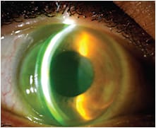 A scleral lens was used to correct irregular astigmatism, providing good vision. In addition, the patient’s dry eye improved and sensitivity to light was eliminated.