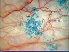 Figure 2 Lissamine green conjunctival staining: a classic sign of dry eye. From: Aldridge C. Protecting the Ocular Surface in Dry Eye Patients. Presented at SECO March 1, 2012. Photo courtesy Michael A. Lemp.