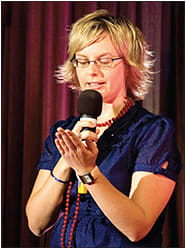 Dr. Holden performing stand-up.