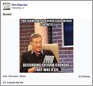 In this example, Park Slope Eye uses humor to engage its Facebook fans while also educating patients.