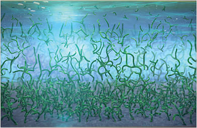 The base layer of the tear film is comprised of tear film mucins, which extend from inside the epithelial cells, through the hydrophobic cell membrane, to the outside of the cell. Called the glycocalyx, these high molecular weight mucins are bound to the cornea on one end but have hydrophilic tails that extend into and hold the aqueous to the cell surface (Figure 1, page 15).1 Because cell membranes are largely hydrophobic, without the mucin glycocalyx, tears could run off the corneal surface like water off a Teflon frying pan. (See “Functions of the Tear Film Mucins,” page 13.) At the same time, the mucins act as a disadhesive so the corneal epithelium doesn’t stick to the tarsal conjunctiva.