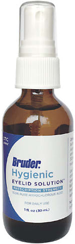 Bruder Hygienic Eyelid Solution is a 0.02% pure hypochlorous acid eyelid solution. The spray application is designed to help provide relief from dryness and itchy, inflamed skin.