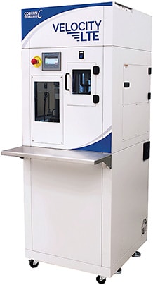 Velocity LTE Spin Coating System, from Coburn Technologies, is a semi-automated spin coater that provides the control and ease of use needed by small to mid-sized labs. The Velocity LTE features an individual control board for each of its three spindles. It can process 80 lenses per hour, and it has an auto-priming function and eliminates overspray.