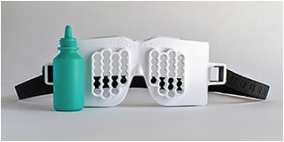 Eye Drop Hero, a device worn like goggles, helps place drops consistently in the same place in the eye or inside the lower eyelid. The device’s 24 holes allow patients, or those who assist with drops, to customize where the drops go. It works with eyes open or closed or overnight (bottles lock in so no need to reset every time). It holds most bottles and single-use vials (especially helpful for patients who have tremors). A free sample is available to professionals..