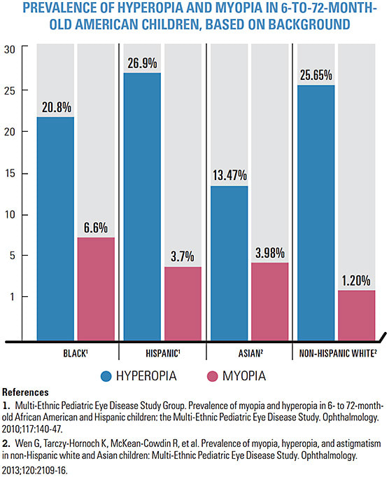 - Multi-Ethnic Pediatric Eye Disease Study Group. Prevalence of myopia and hyperopia in 6- to 72-month-old African American and Hispanic children: the Multi-Ethnic Pediatric Eye Disease Study. Ophthalmology. 2010;117:140-47.