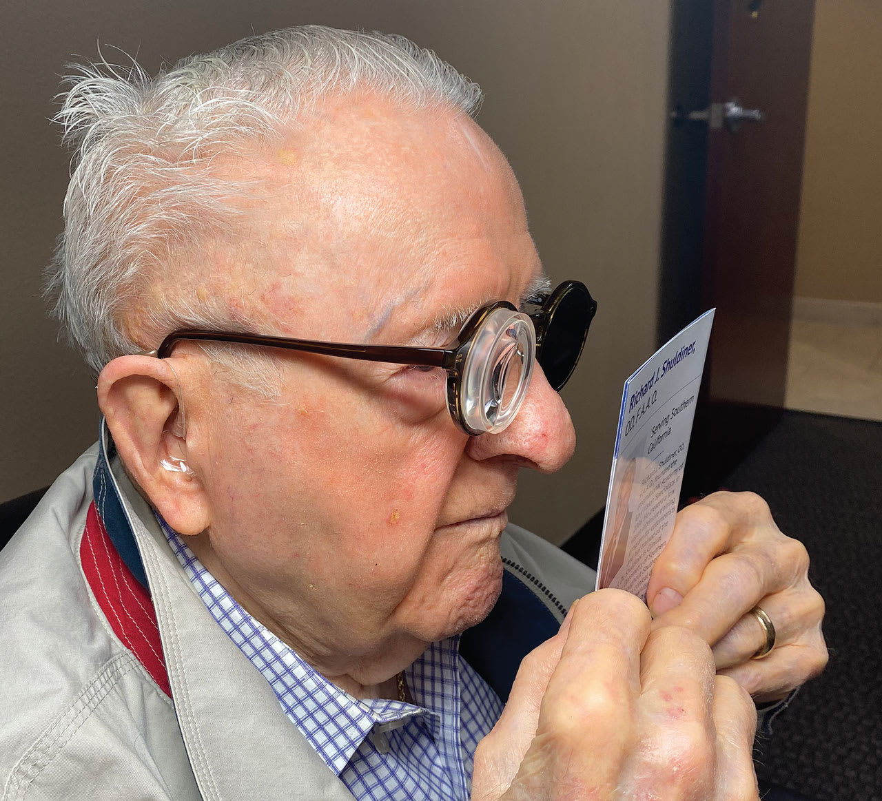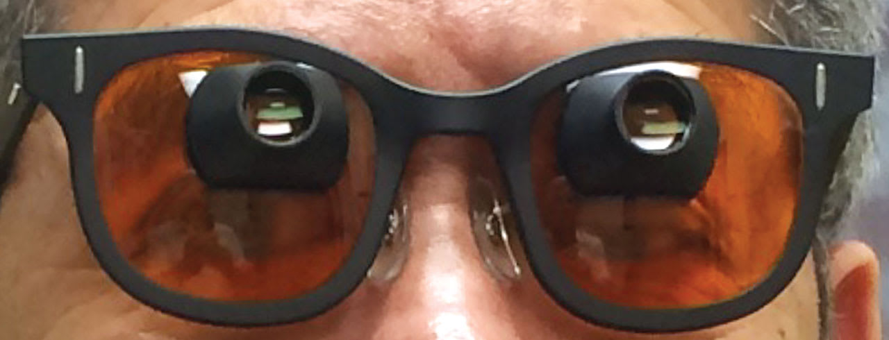 Bioptic telescopes are placed above the line of sight for tasks like reading signs and seeing traffic lights when driving. They are also useful for seeing other distance objects. I personally use them at sporting events to “zoom” in on the quarterback, for example. The prescription carrier lens below the telescope allows a full visual field to be seen. Bioptic telescopic spectacles require training and adapting. The patient should be advised that they can cause dizziness the first time they are used, though, fortunately, that symptom does not persist.