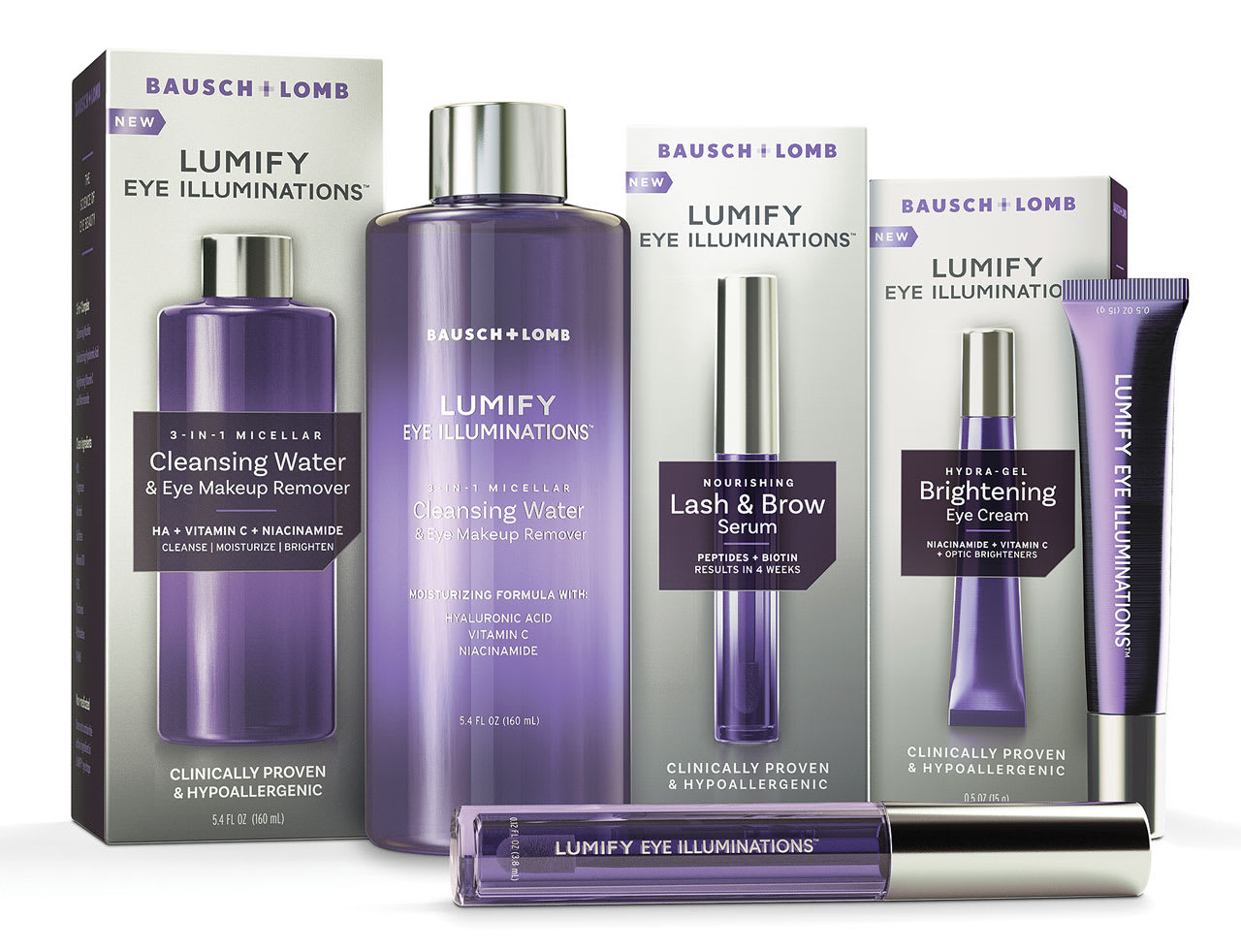Dr. Brujic says he broaches the use of the Lumify Eye Illuminations 3-in-1 Micellar Cleansing Water and Eye Makeup remover to makeup wearers by touting its safe and effective ingredients, and its easy, comfortable use. The ingredients: hyaluronic acid, vitamin C, niacinamide, and eyebright botanical, all of which moisturize and brighten the delicate skin surrounding the eyes, according to Bausch + Lomb. The product does not require rinsing or harsh rubbing and was tested for compatibility with lash extensions and contact lenses, the company says.