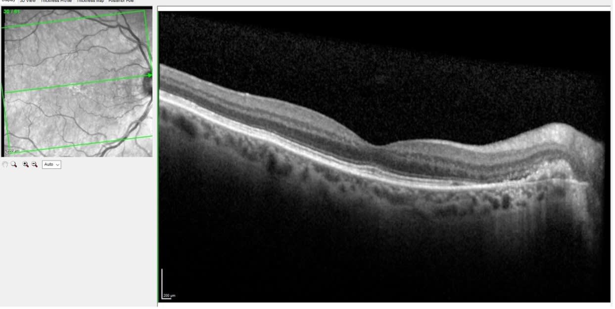 However, OCT scanning of the right macula told a different story, as seen in Figure 3.