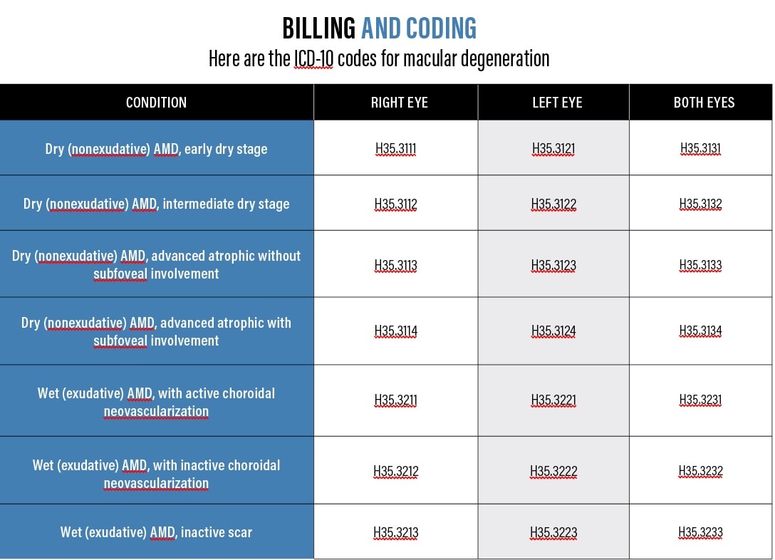 Geographic atrophy (GA) can lead to choroidal neovascularization (CNV), resulting in wet AMD. Additionally, a patient who has wet AMD may develop areas of GA. In either scenario, the patient will experience reduced vision, which can lead to progressive vision loss. Optometrists can identify the biomarkers that increase GA risk with the help of advanced diagnostic tools and inform these patients of interventions. (See "Billing and Coding" below.)