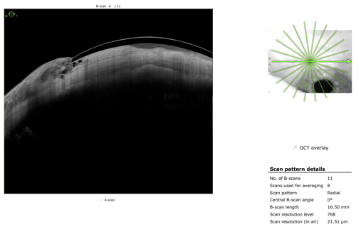 At the slit lamp, the lens appeared acceptable, yet the patient continued to report discomfort. As such, high-resolution anterior segment imaging with swept-source OCT was ordered to provide additional insight. Cross-sectional imaging revealed subtle but clinically significant compression of the bleb by the lens landing zone—findings not apparent at the slit lamp. Guided by this information, targeted modifications were made to redistribute pressure and improve alignment over the elevated tissue.