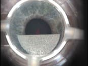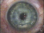 | Here you see the docking ring with the applanation lens securely positioned on the eye. | Notice the perfectly round treatment pattern with well-defined flap edges and hinges. |
