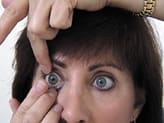 Some patients close their eyes reflexively as their fingers approach. Make sure they keep their eyes open. In time, when they become proficient, they can insert lenses without a mirror.