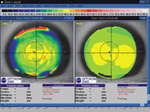 Corneal topography has already successfully incorporated RGP fitting nomograms into the software packages for quantitative contact lens parameter selection. Someday, we'll also have sophisticated software packages that will troubleshoot soft toric lens fitting. For now, you can retrieve some of the most important fitting information for soft toric lenses by viewing the standard map displays.