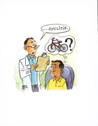"Cyclitis?! Sounds like a rash from a bicycle seat. How can he tell what's wrong at that end of my anatomy by examining my eyes?"
