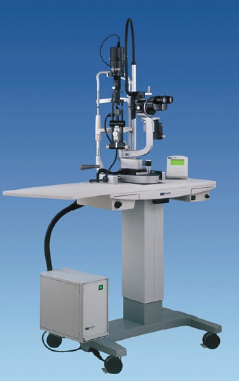 Haag-Streit's new OLCR Pachymeter uses optical low coherence reflectometry technology to make highly accurate and reproducible measurements of plus or minus 1 µm of corneal thickness, the company says. The measuring head of the OLCR emits two red LED-aiming beams that converge at the point of focus of an invisible OLCR beam. Audible signals guide the operator to move the slit lamp back and forth until the two beams merge. When the system is focused, the OLCR automatically records corneal thickness and displays the results on the control panel.