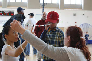 If not for the people and organizations that donated their time and generosity, the sports clinic wouldn't have been possible. VSP donated sports equipment, Bausch & Lomb displayed its Nike Maxsight Sport-tinted contact lenses, and a local company and church donated snacks and water.