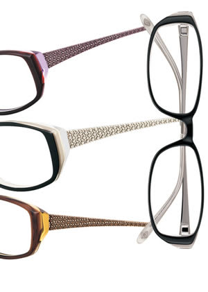 • Ellen Tracy Eyewear, from Clear-Vision Optical, welcomes Vitreous, a women’s upswept zyl/metal combination frame. This rectangle frame features multiple laminate layer construction in contrasting colors that can be seen from the frame’s profile and a flat metal temple with a textured, polished tooled bead detail. Other features: the silver Ellen Tracy logo inside the left temple and a double action spring hinge. Colors include black laminate, brown laminate and plum laminate. Frame sizes are 50/17/130 and 52/17/135. ClearVision Optical Phone: (800) 645-3733 Web: www.cvoptical.com