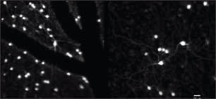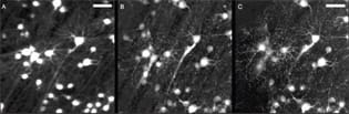 Adaptive optics fluorescence images of primate ganglion cells.