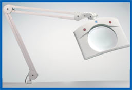 ■ The Deluxe Magnifying Lamp, from Daylight, is designed for inspection work. The lamp features a table clamp, a 1.75X magnification, 7.5-inch glass lens, a flicker-free electronic ballast, two separate 13 watt low-heat tubes with individual switches for lighting control and a "Clip-on Lens" system that allows you to change the lamp's magnification, sans tools. A 2.75X, 3.75X and 4.75X lens are available separately.