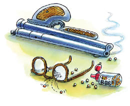 ► "When I examined an 11-year-old patient," emails Dr. Cory Bosanko, Crossville, Tenn., "I discovered his best acuity in one eye was 20/400 due to his having been shot in that eye three years previous with a B.B gun. I had a detailed discussion with the patient and his mother about the importance of his wearing the polycarbonate lenses I prescribed as a protective mechanism to his other eye.