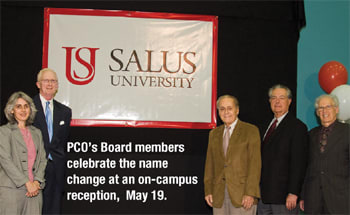 ■ Effective July 1, 2008, the Pennsylvania College of Optometry (PCO), located in Elkins Park, Pa., will become Salus University, announced the school's president, Thomas L. Lewis, O.D., at an oncampus press conference in late May.