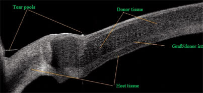 Components of a cornea transplant are precisely presented in this RTVue OCT scan.